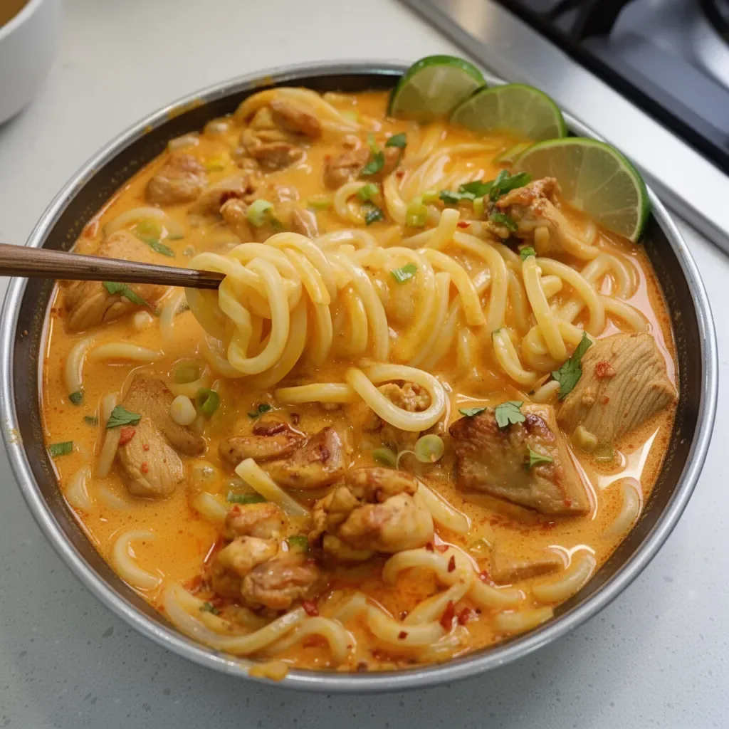 Thai-Inspired Coconut Red Curry Chicken Udon