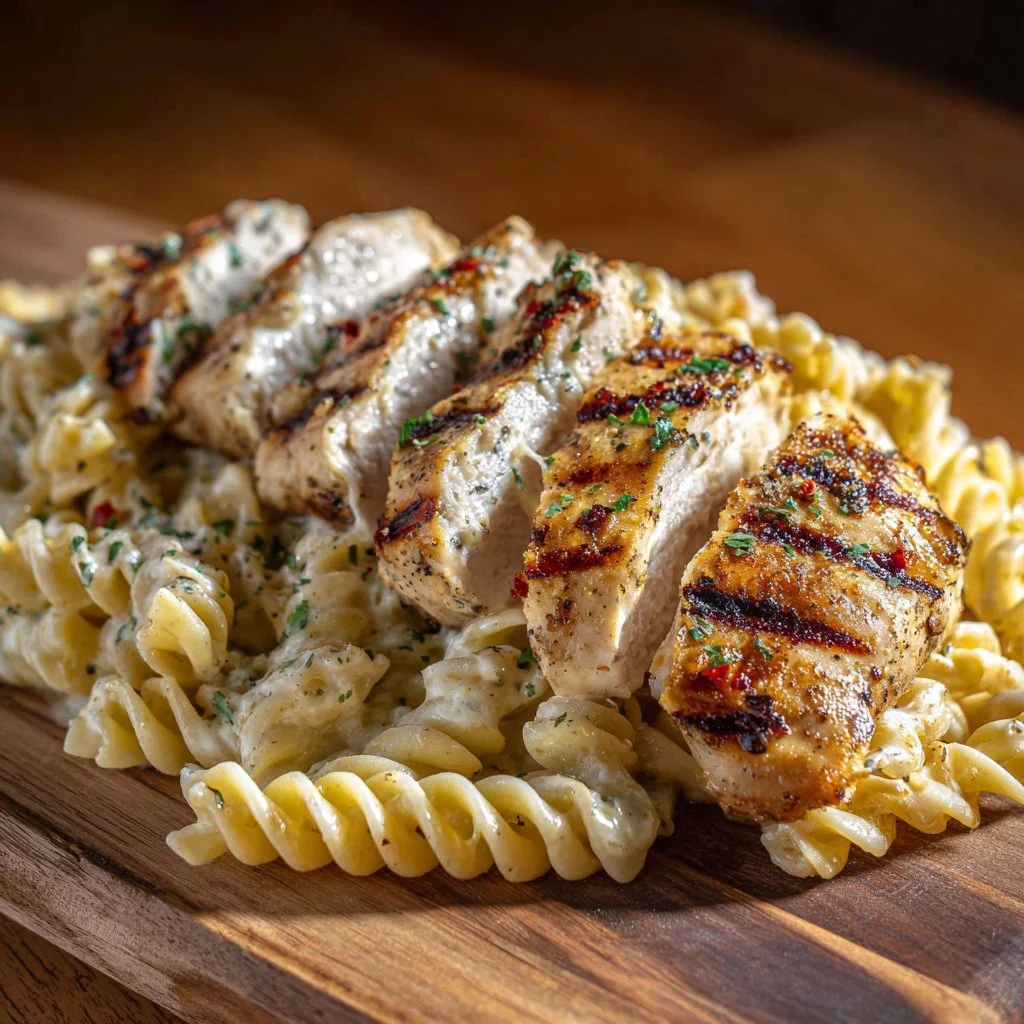 Serving creamy chicken pasta can be a delightful experience. When plating, create a nest with your pasta, then arrange the sliced chicken atop for an inviting presentation. Finish with a sprinkle of freshly chopped parsley for a pop of color.
