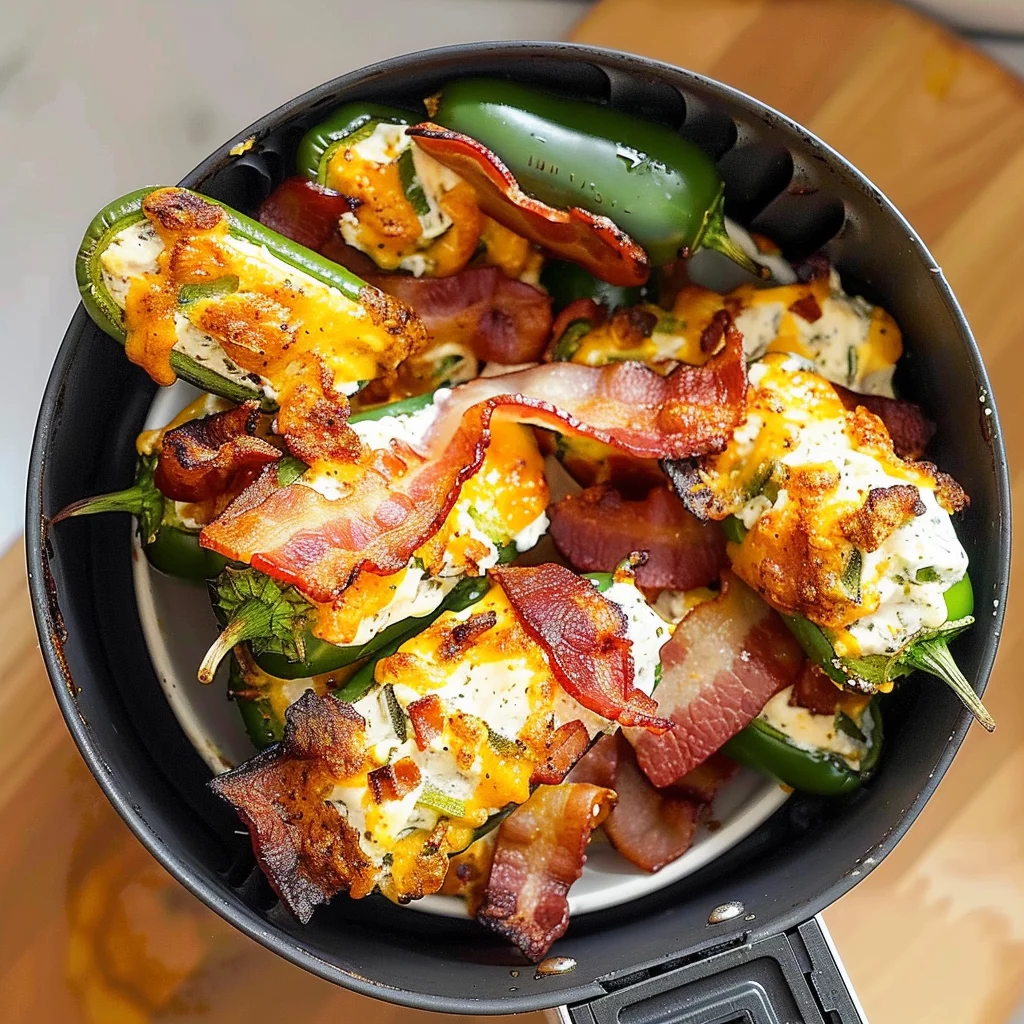 Discover how to make irresistible Air Fryer Buffalo Ranch Bacon Stuffed Jalapeño Poppers. Crispy, spicy, and creamy—perfect for any gathering or snack craving!