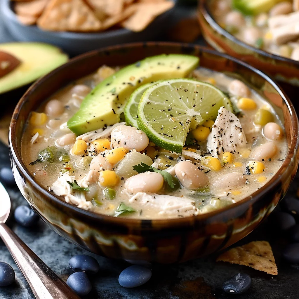 Presentation is an essential part of the Amazing White Chicken Cream Cheese Chili experience. Serve in a cozy bowl, topped with fresh avocado slices and a handful of crushed blue corn tortilla chips. This not only adds texture but also a pop of color, making the dish as visually appealing as it is tasty.