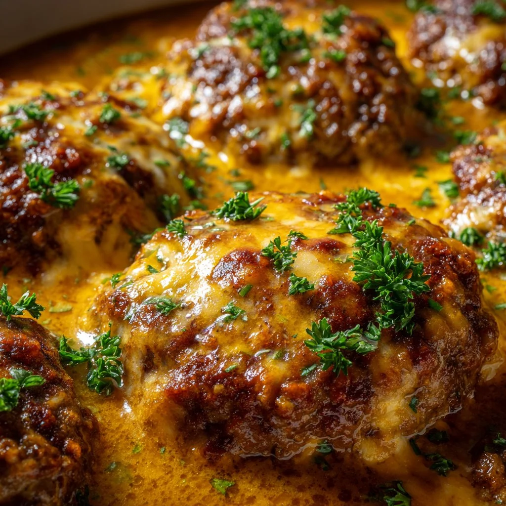 - Nestle the browned patties into the gravy, cover tightly, and bake in a preheated oven at 350°F (175°C) for 45 minutes. Uncover and bake for an additional 15 minutes.