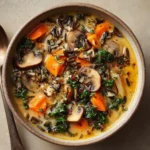 A hearty, nourishing wild rice soup combining earthy flavors and comforting warmth, perfect for the fall season.
