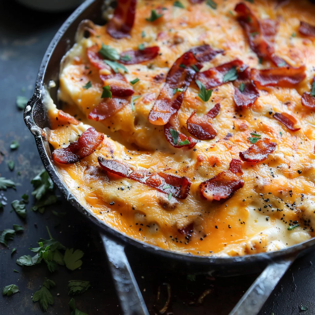 Indulge in the ultimate comfort food with our Bacon Laden Cheddar Grilled Cheese Skillet Bake recipe. Learn how to make this cheesy and savory dish today!