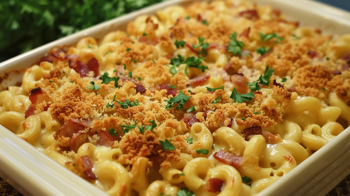 Discover the ultimate comfort food with our Bacon Mac & Cheese Casserole recipe. Learn how to create a cheesy, bacon-filled dish that will leave you craving more.