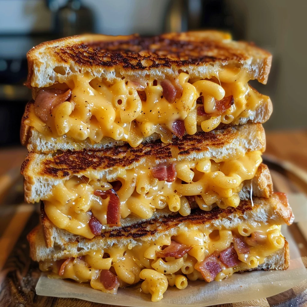 Memories of rainy afternoons spent in the kitchen with my grandmother always bring a smile to my face. She had a knack for transforming the simplest ingredients into magical meals, and her love for cooking was infectious. One of her specialties was a mouthwatering Bacon Mac ‘n’ Cheese Grilled Cheese, which quickly became a family favorite. It’s a dish that encapsulates warmth and comfort, blending the savory richness of bacon with the creamy goodness of mac and cheese.