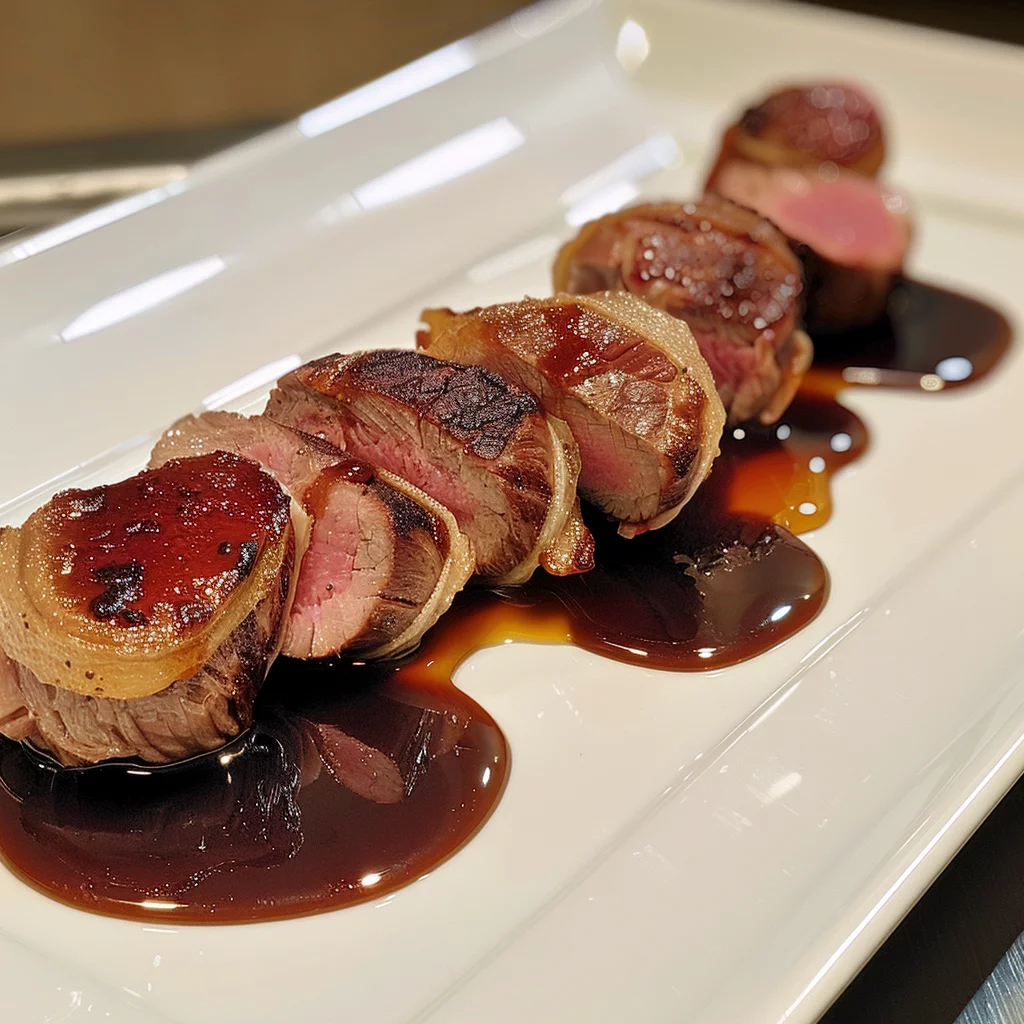 Presentation plays a vital role in the dining experience. Once the tenderloin has rested, slice it into medallions, showcasing the perfectly cooked venison encased in crispy bacon.