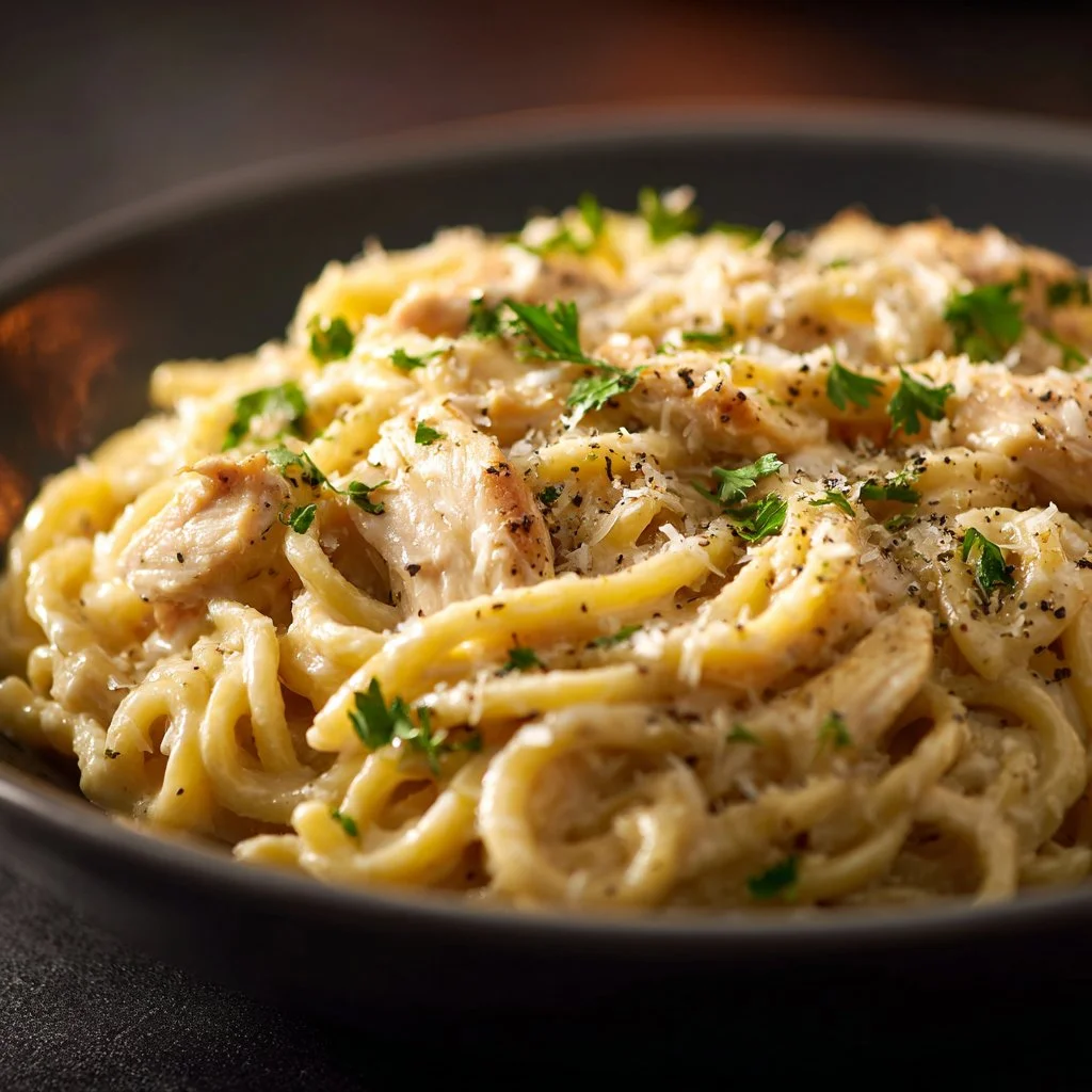 A comforting crockpot dish featuring tender garlic Parmesan chicken served over pasta, perfect for busy weeknights.