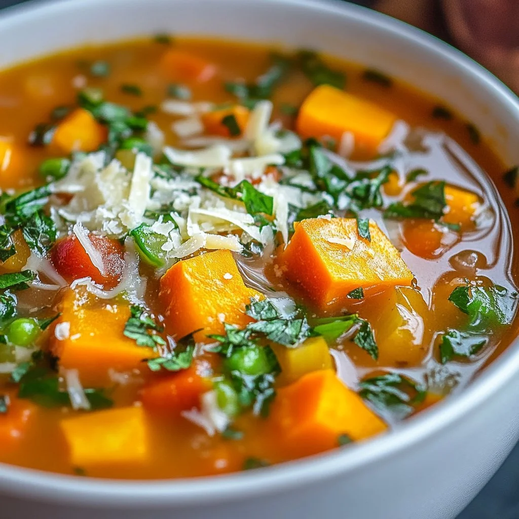 A comforting and nutritious sweet potato vegetable soup infused with warm spices and creamy texture, ideal for chilly evenings.
