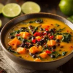 A comforting and nourishing soup that combines the earthiness of black beans with the sweetness of tender sweet potatoes.