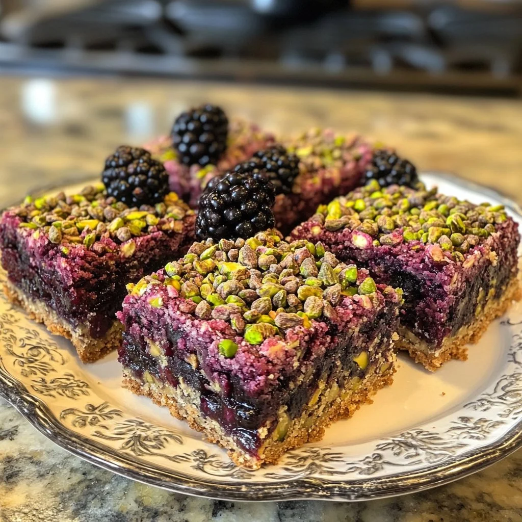 Deliciously sweet and nutty bars featuring fresh blackberries and crunchy pistachios, perfect for any occasion.