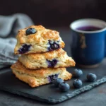 Warm blueberry biscuits with a buttery texture and juicy blueberries, perfect for breakfast or a snack.
