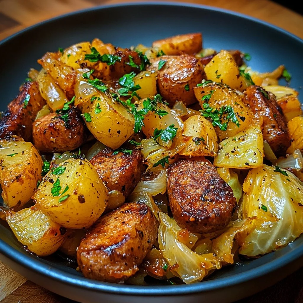 A hearty dish combining cabbage, potatoes, and sausage that brings warmth and nostalgia to the dinner table.