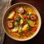 A creamy and flavorful soup featuring andouille sausage and hearty potatoes, infused with Cajun spices for a comforting meal.