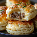 Delicious fluffy biscuits filled with rich cheese and hearty sausage, perfect for any meal or snack.