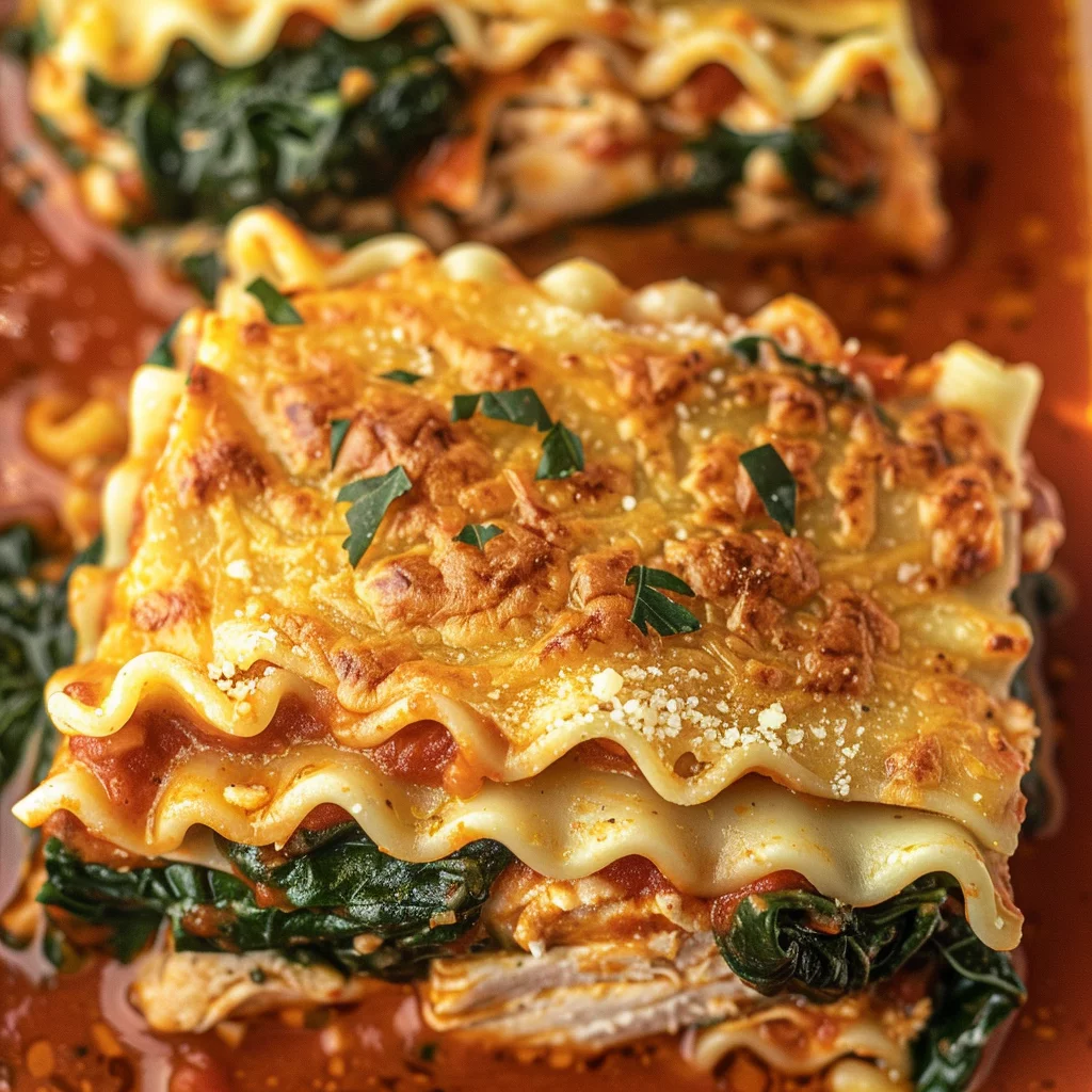 Learn how to make a delicious Cheesy Chicken Spinach Lasagna with this easy recipe. Perfect for a family dinner or special occasion. Click to get the full recipe now!