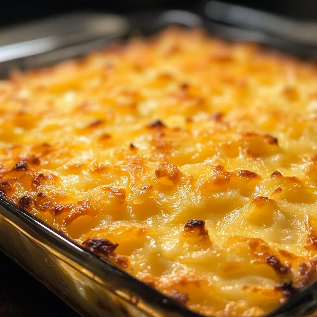 A creamy and cheesy hash brown casserole that combines crispy hash browns and melted cheddar, perfect for brunch or dinner gatherings.