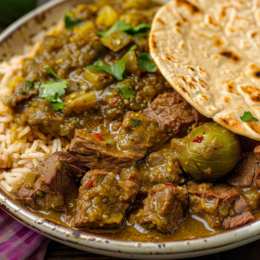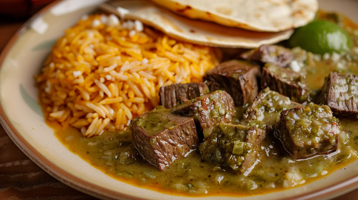 Presentation is key when serving your Chile Verde Recipe. Arrange the tender beef and vibrant sauce over a bed of Spanish rice for a colorful and appealing plate. Warm flour or corn tortillas on the side offer a delightful way to scoop up every last bit of sauce.