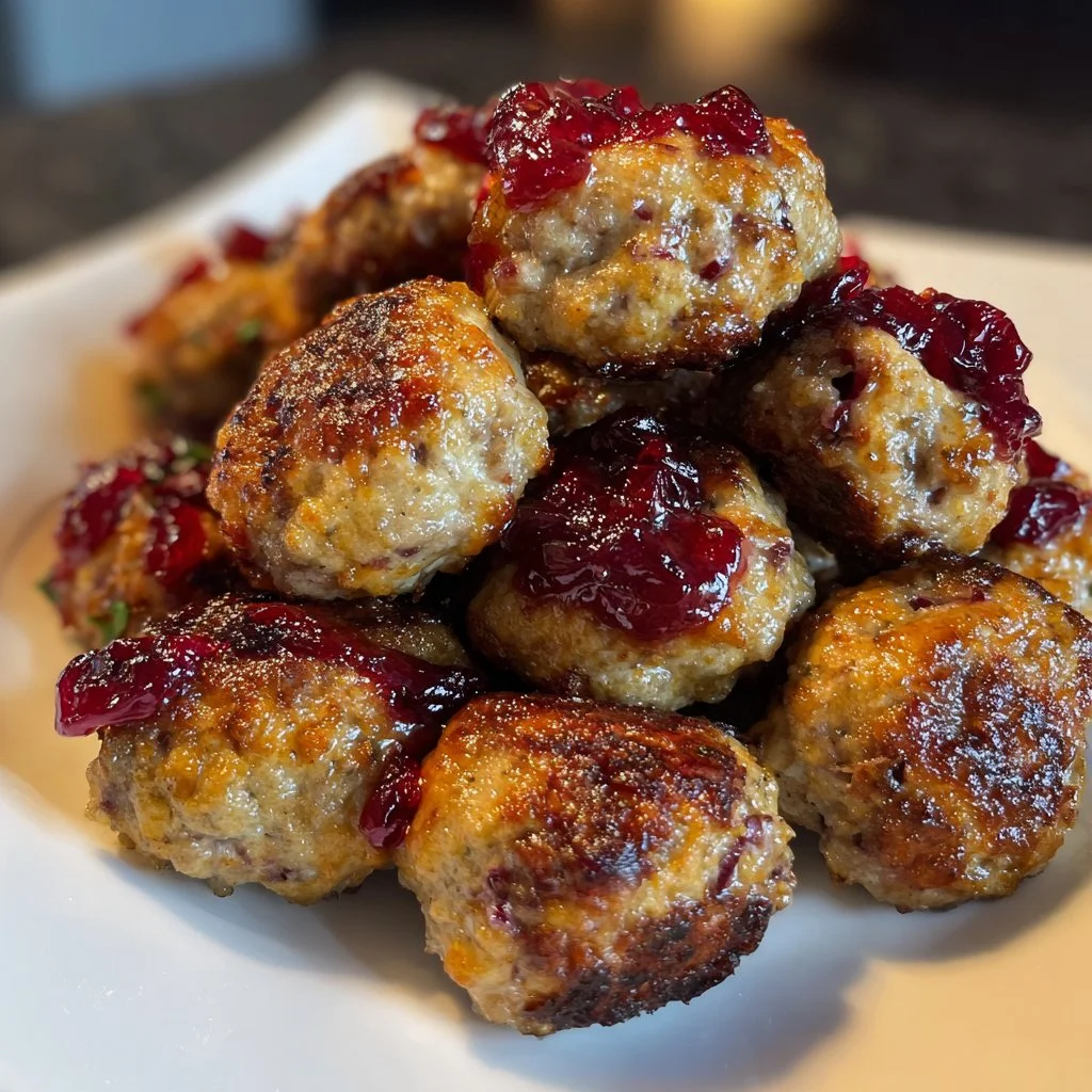 Savory meatballs glazed with sweet and tangy cranberry sauce, perfect for holiday gatherings.