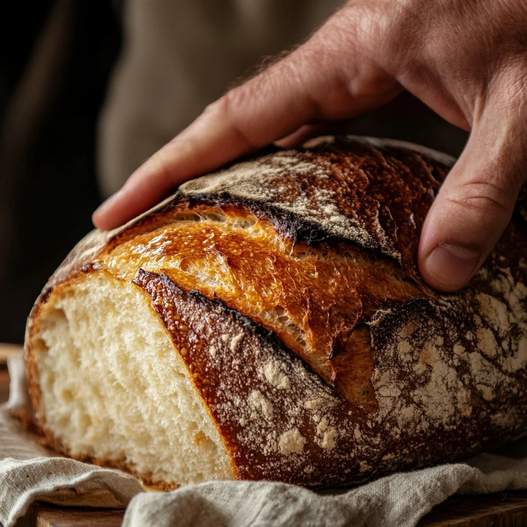 Use a Dutch oven for baking, as it traps steam, mimicking a professional bread oven. That steam creates a crispy crust while producing moist interior bread. If you desire a beautiful crust, uncover the Dutch oven during the last 15 minutes of baking to allow the crust to achieve the perfect golden brown color.