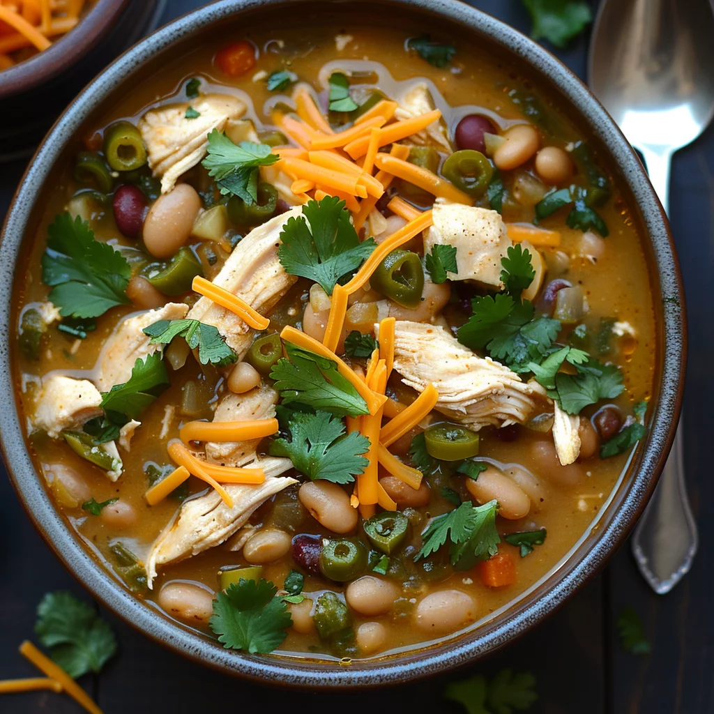 Onions and garlic are essential aromatics in this recipe. The combination of chopped onions and minced garlic creates a fragrant base for your chili. These ingredients not only add flavor but also bring out the natural sweetness of the chicken as they cook together. The use of chicken broth further enriches the dish, providing a savory liquid that ties all the components together.