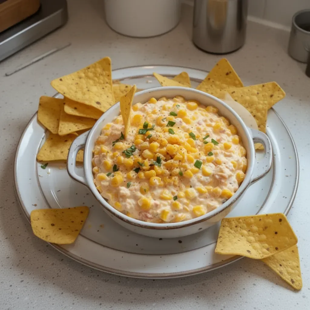 Corn dip pairs wonderfully with various snacks. Tortilla chips allow for easy dipping, while fresh vegetables like cucumber and bell pepper provide a lighter alternative. Arrange an extensive selection to cater to all preferences.