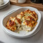 - Bake uncovered for 30–35 minutes until the chicken reaches 165°F (74°C) and the sauce bubbles.