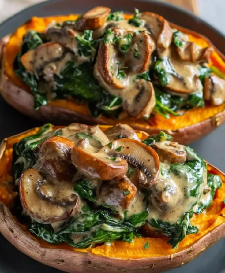 - Creamy Mushroom and Spinach Stuffed Sweet Potatoes Recipe