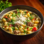 A cozy, creamy soup that combines hearty Italian beef sausage with vegetables and Parmesan cheese for a delicious comfort meal.