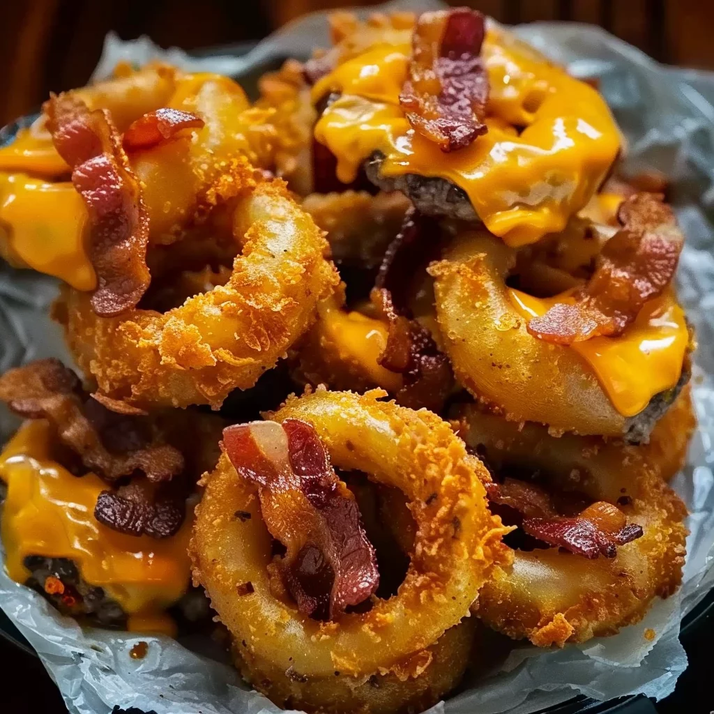 - Crispy Bacon Cheeseburger Loaded Onion Ring Bomb