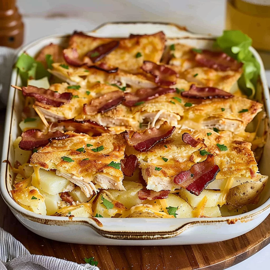 Savor the ultimate comfort food with our Crispy Chicken Bacon Club Loaded Tater Bake recipe. Discover step-by-step instructions for a crowd-pleasing dish tonight!
