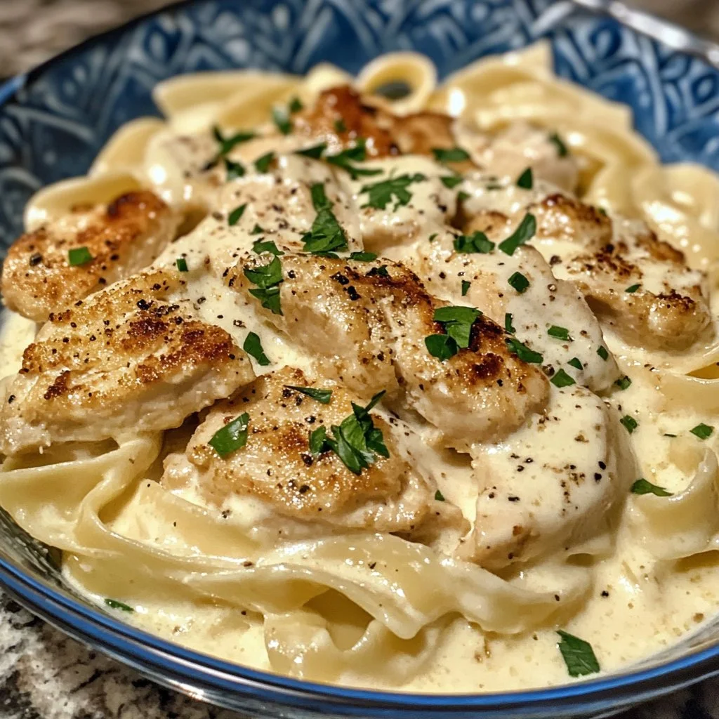 Serving Crispy Chicken Fettuccine Alfredo is as delightful as making it. Use a large bowl or individual plates to showcase the glistening fettuccine swirled in rich sauce. Top it off with crispy chicken pieces and a sprinkle of freshly grated parmesan cheese. Fresh herbs like parsley can act as colorful garnishes, enhancing the visual appeal.