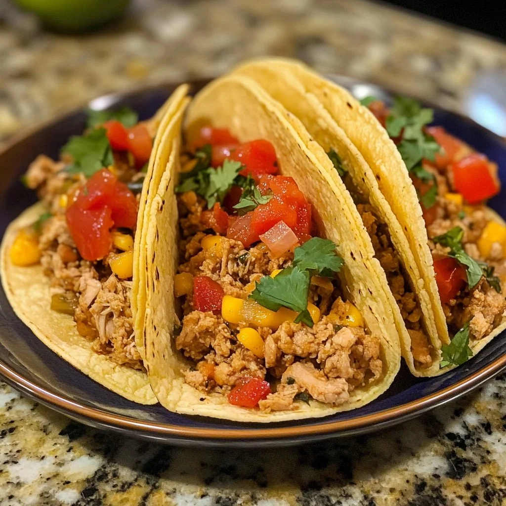 For added moisture, mix leftover crockpot juices into the shredded chicken. Customize your tacos with various toppings like cilantro, avocado, and sour cream.