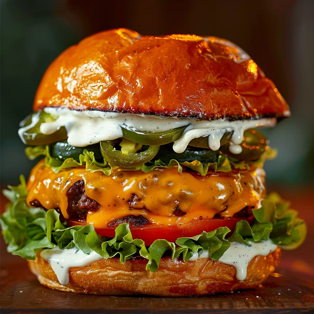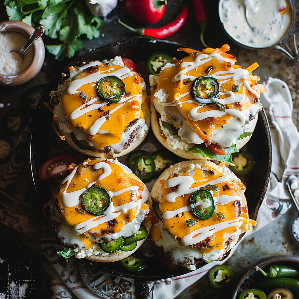 From mastering the smash technique to perfecting the layering of flavors, each step is an opportunity to create something extraordinary. The balance of heat from the jalapeños and the cooling ranch drizzle makes this burger a standout dish, perfect for any occasion.