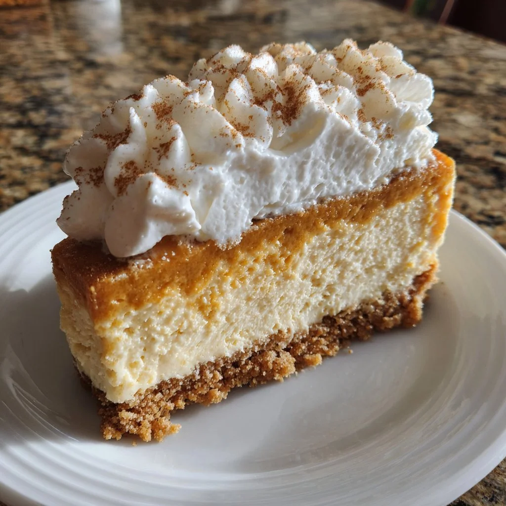 A creamy pumpkin cheesecake with a rich graham cracker crust, embodying the flavors of autumn.