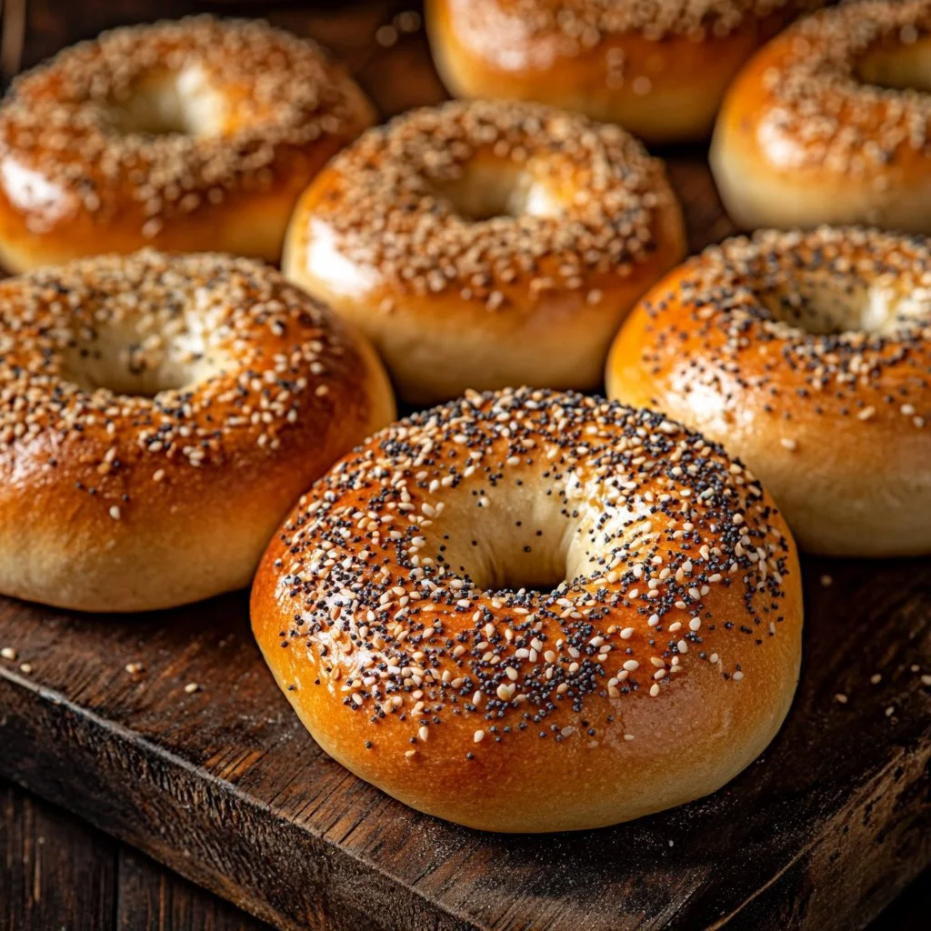 Delicious homemade bagels made with sourdough starter, perfect for breakfast or snack time.