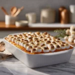 A comforting sweet potato casserole with a creamy filling and golden marshmallow topping, perfect for family gatherings and holiday dinners.