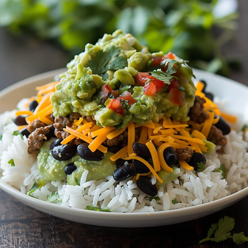 Presentation can elevate your easy taco rice bowl from a simple meal to a feast for the eyes. Use a wide, shallow bowl to showcase the vibrant layers of rice, beef, and toppings. Arrange the guacamole, cheese, and salsa in neat sections over the top, and sprinkle a final touch of fresh cilantro for a burst of color.