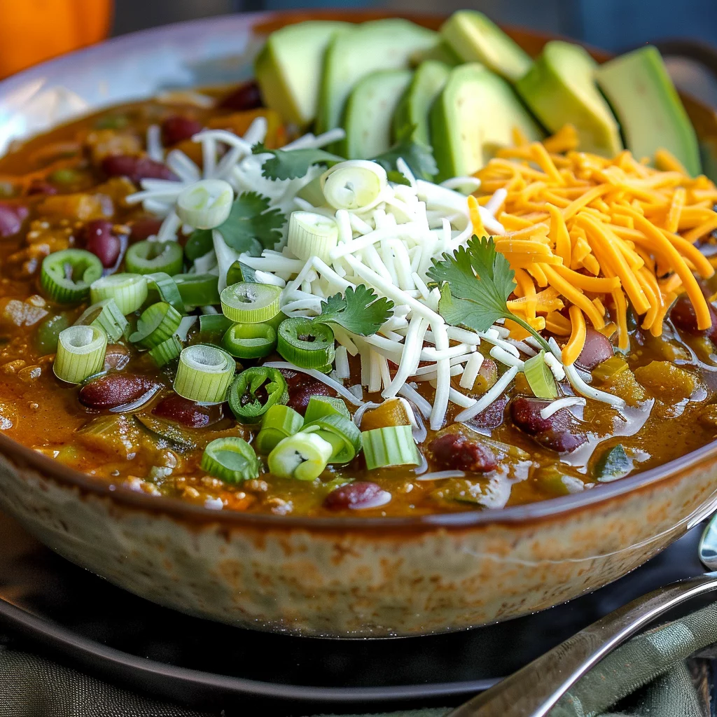 This chili pairs well with a side of warm cornbread or a crisp salad, adding texture and variety to the meal. Its vibrant color and inviting aroma make it a centerpiece for any fall gathering, encouraging friends and family to gather around and savor each spoonful.