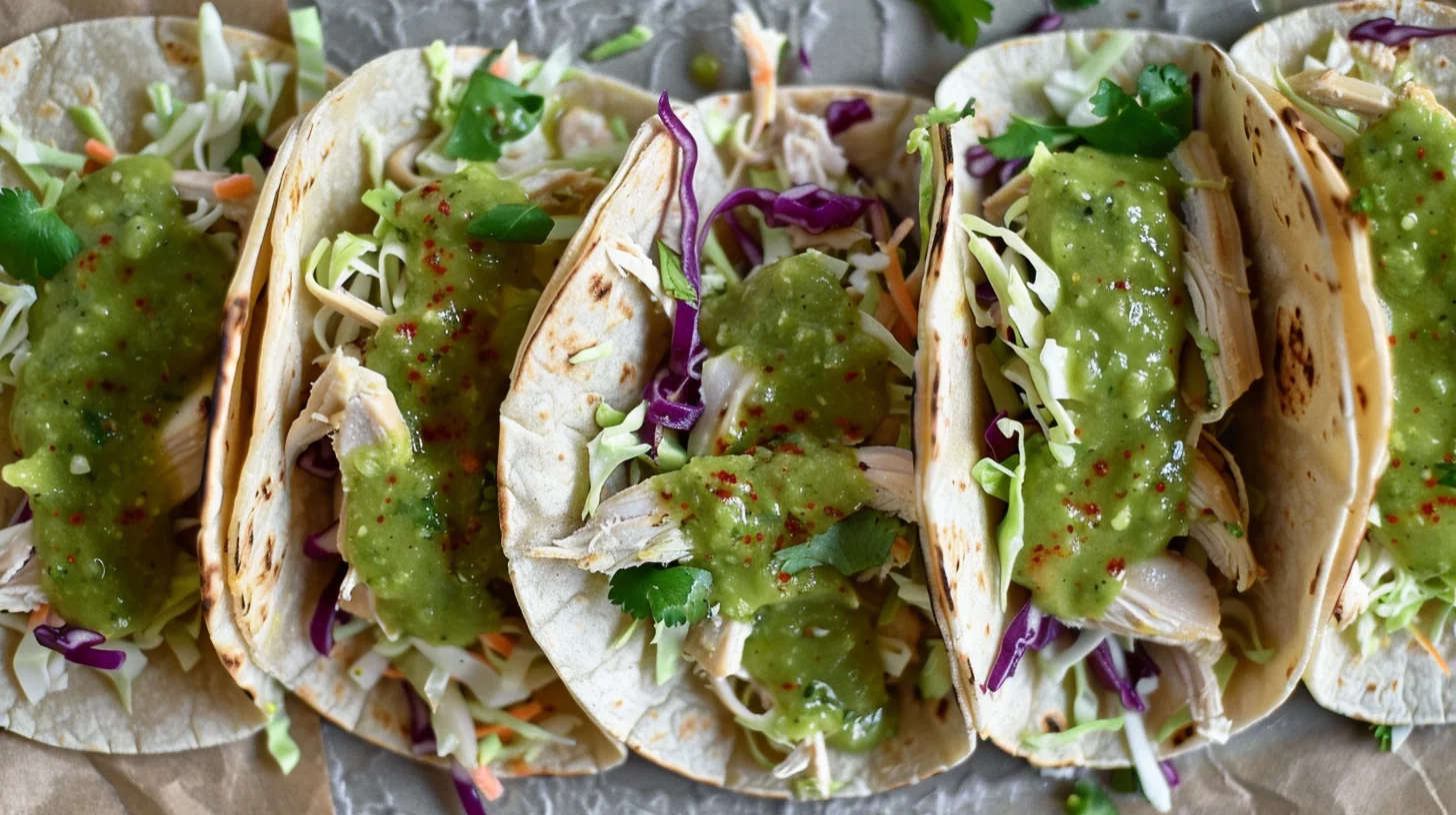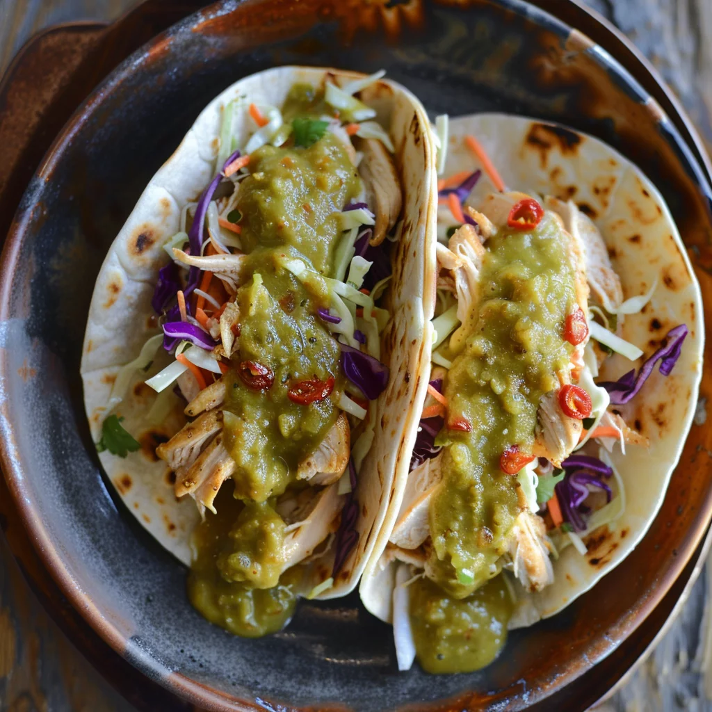 The key to perfect tacos lies in the quality of the ingredients. Use fresh, vibrant produce for the slaw, and choose chicken breasts that cook evenly and shred easily. When heating the tortillas, aim for a slight char that adds depth of flavor. These elements come together to create a taco that’s not only delicious but also visually appealing.