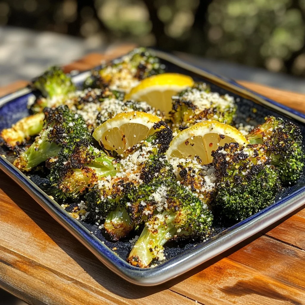 A flavorful grilled broccoli dish enhanced with lemon and parmesan, transforming the vegetable into a delicious star of any meal.