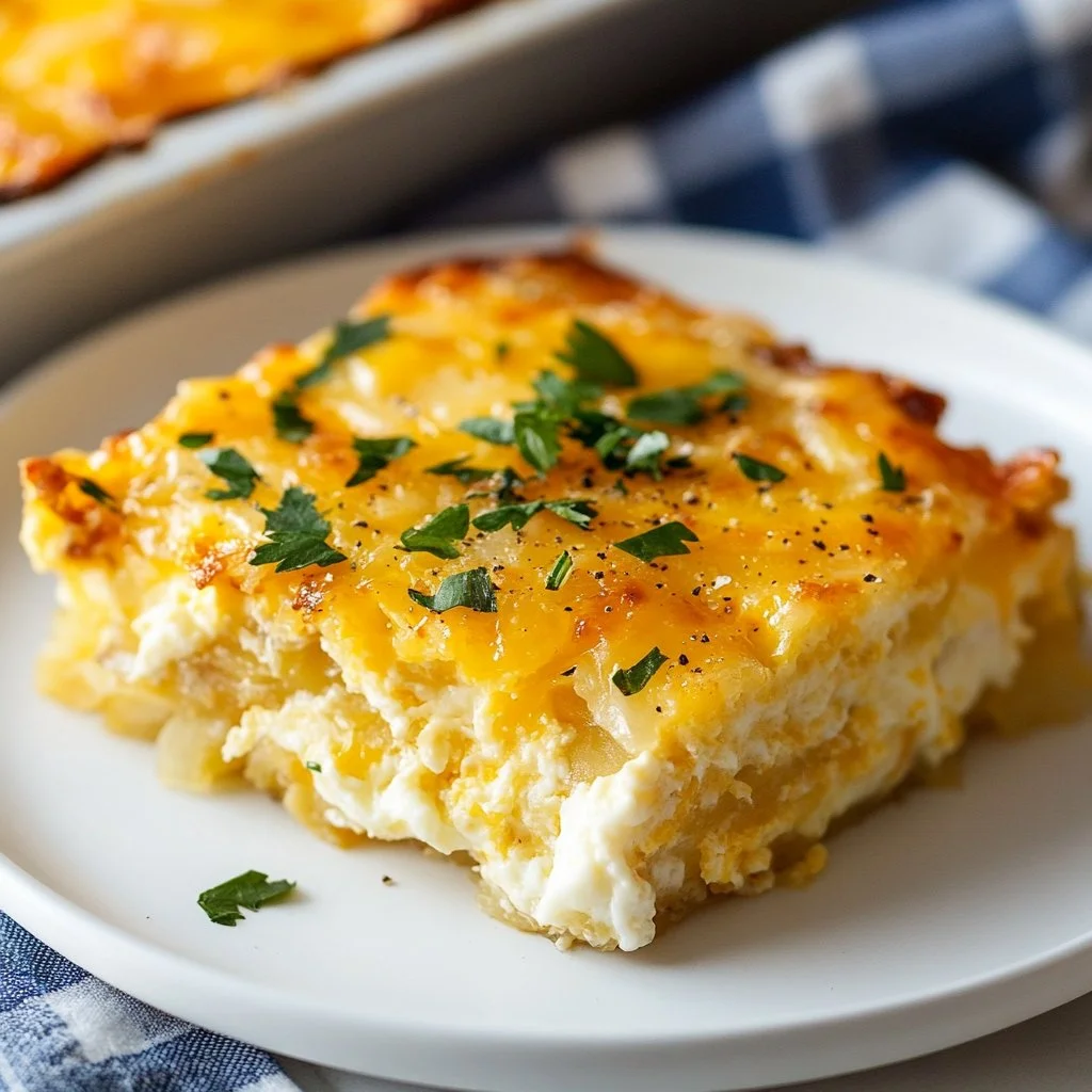 A hearty and comforting hash brown egg casserole perfect for brunch gatherings or cozy family meals.