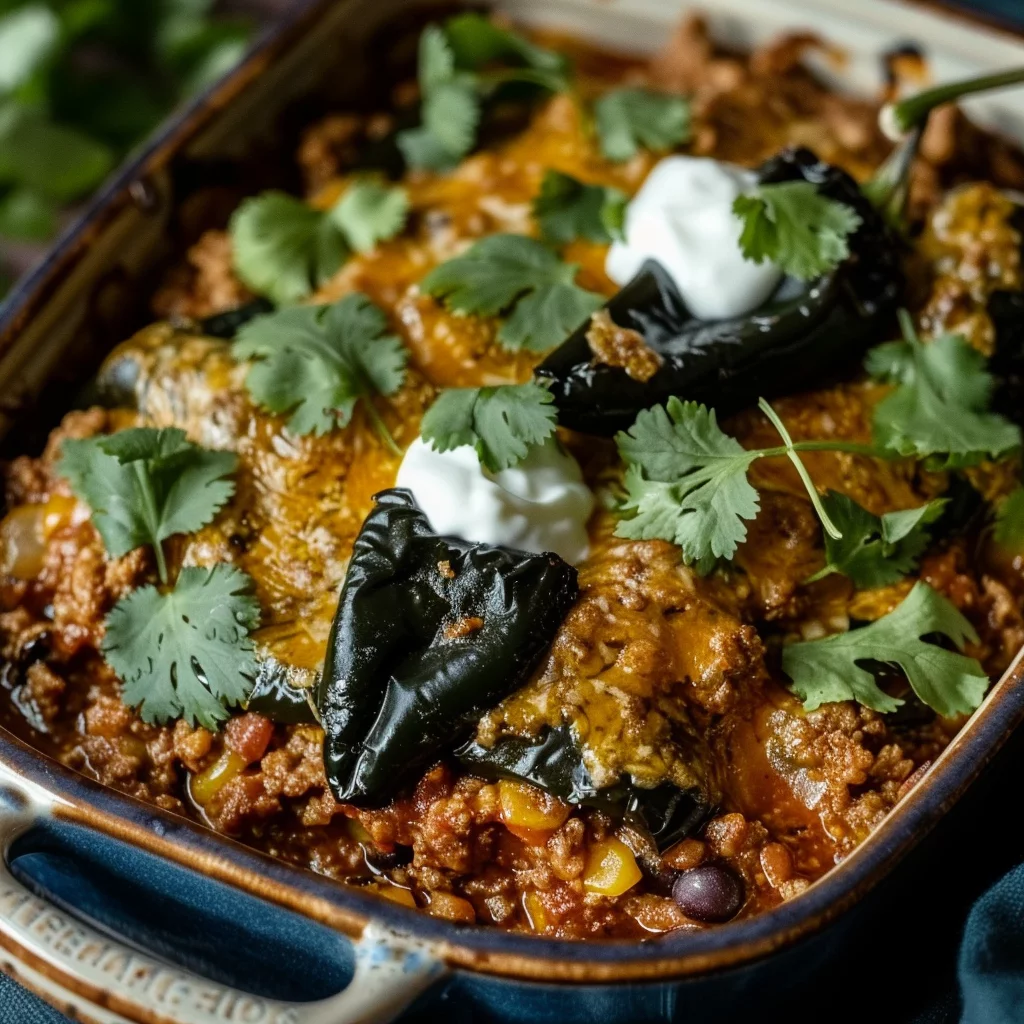The key to a successful casserole is in the layering. Begin by greasing a 9×13-inch baking dish and arranging the roasted poblano peppers at the bottom. Spread the savory beef mixture evenly over the peppers, followed by a generous sprinkle of shredded cheeses. Pour the egg mixture over the top, ensuring it covers every inch of the casserole for a uniform bake.