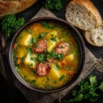 A warm and comforting soup made with kielbasa, potatoes, and creamy broth, perfect for chilly days.