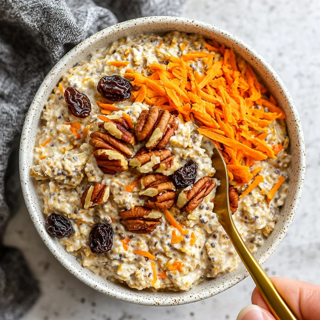 Presentation brings out the beauty of high protein carrot cake overnight oats. When serving, layering the oats with Greek yogurt creates an appealing visual effect. Topping with chopped walnuts or pecans enhances flavor and adds a delightful crunch to each bite.