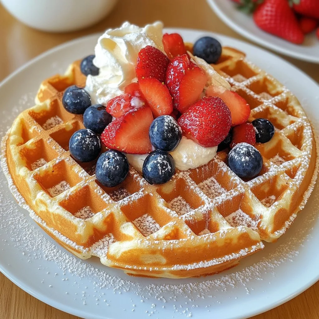 Delicious homemade waffles with a perfect blend of crispiness and fluffiness, perfect for breakfast or brunch.