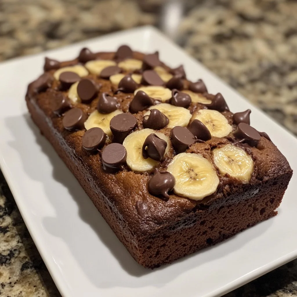 A deliciously moist banana bread loaded with chocolate chips, perfect for breakfast or dessert.