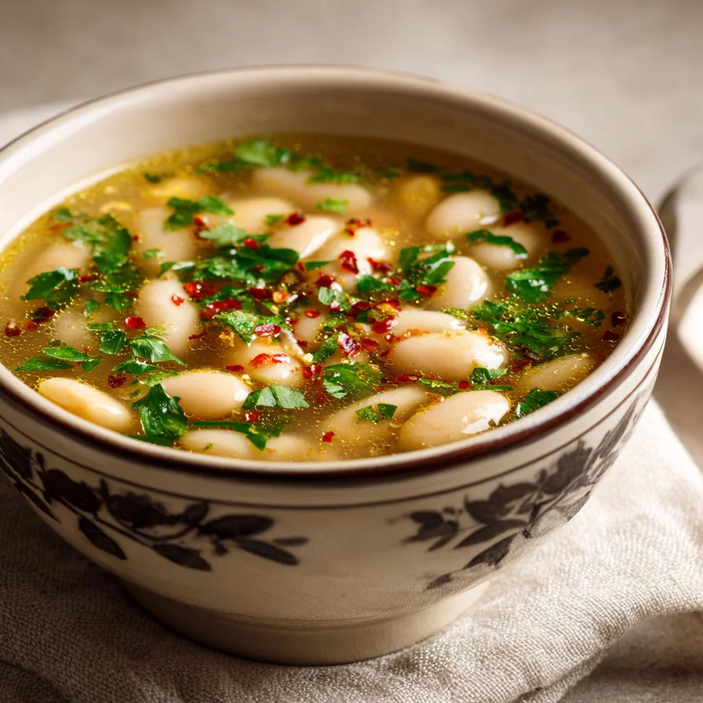 This warming Italian white bean soup is a comforting dish made with cannellini beans, garlic, and fresh herbs, perfect for chilly evenings.
