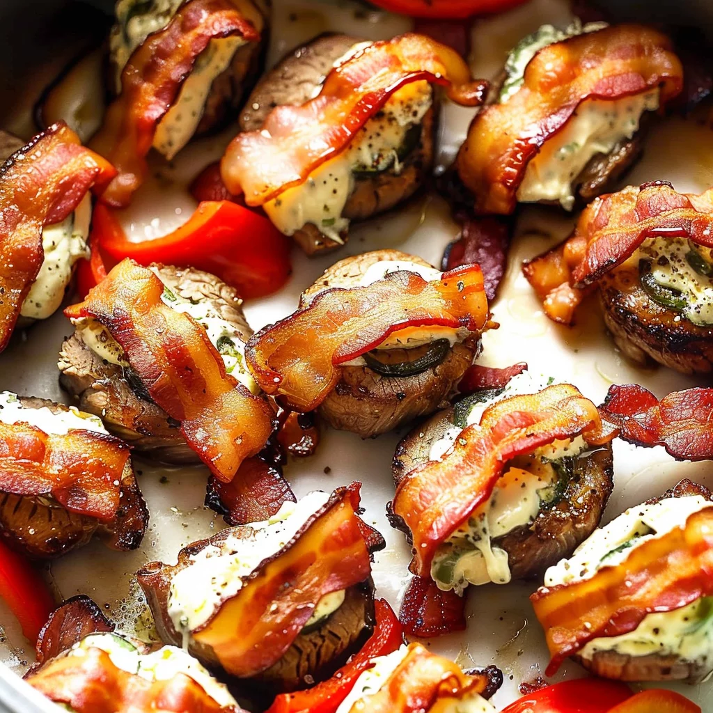 Prepare the jalapeños by removing the tops and slicing them in half lengthwise. Deseed and rinse them to mellow the heat, then fill each half with softened cream cheese. This step not only enhances the flavor but also ensures that each bite is infused with creamy goodness.