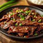 A deliciously sweet and savory Korean beef bulgogi, featuring tender marinated steak, crunchy veggies, and warm rice, perfect for sharing.