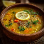 A vibrant and nourishing lemon lentil soup filled with the goodness of red lentils, fresh vegetables, and aromatic spices, perfect for cozy nights.